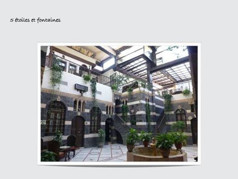 [6] Pour les six nuits, grand « petit déjeuner » syrien compris, péréquation pour trois personnes dont une Syrienne, réparties dans deux chambres : l’équivalent de 225 euros, chacune.