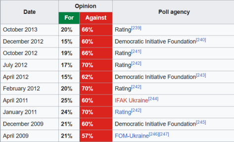 Et pourtant : au sommet de 2008 à Bucarest, l’OTAN annonçait tranquillement que l’Ukraine et la Géorgie allaient rejoindre l’Alliance. Rappelons que tous les sondages indiquaient alors que moins de 25% des Ukrainiens désiraient rejoindre l’OTAN !7